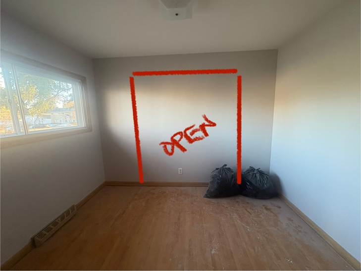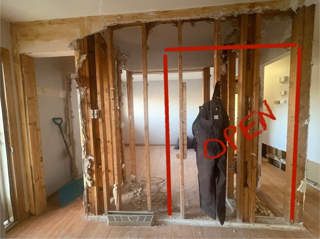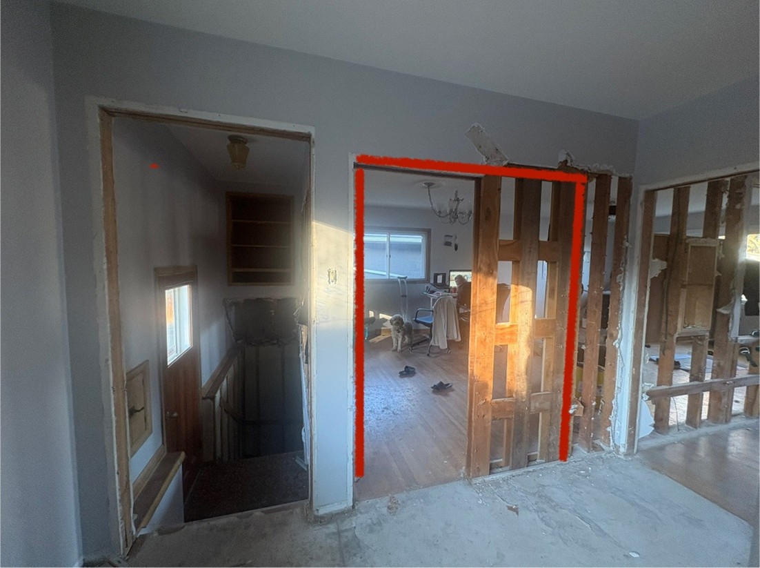 - Keeping existing headers and king/jack studs for lightly loaded walls