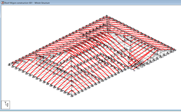 I also kept member-end stiffness unreleased to streamline modeling time. The goal was not detailed moment distribution, but reaction estimates and load paths.